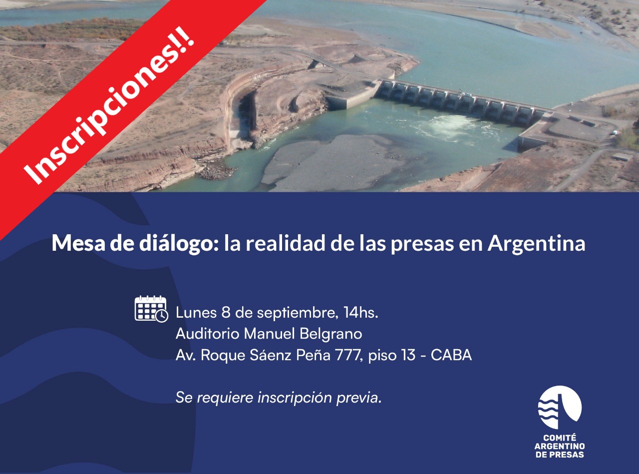 El Comité Argentino de Presas los invita a inscribirse a la jornada abierta de exposiciones y debate sobre la situación actual de las presas en Argentina. La actividad contará con especialistas del sector y será de acceso libre con inscripción previa.